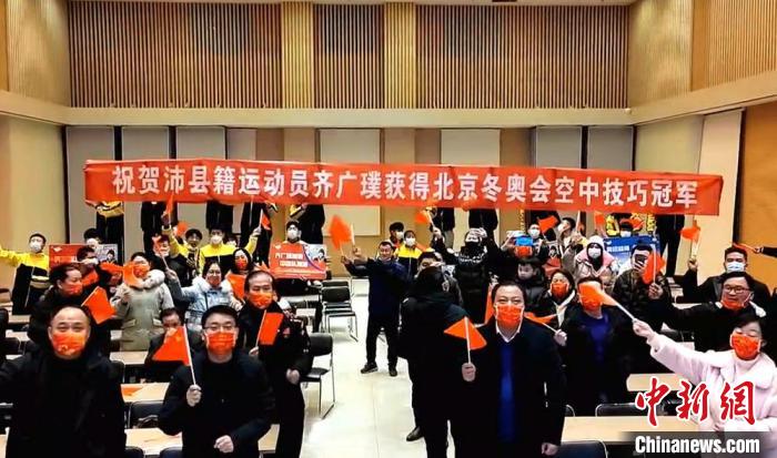 中新網徐州2月17日電 (記者 朱志庚)“金牌,金牌!齊廣璞好樣的!我們為你自豪!”2月16日晚上,在江蘇省徐州市沛縣圖書館直播現場,家鄉的人們為齊廣璞奪冠歡呼。在剛剛結束的北京2022年冬奧會自由式滑雪男子空中技巧決賽中,江蘇省沛縣籍運動員齊廣璞技壓群雄,如愿摘得金牌,為中國代表團贏得第七金。