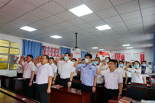 禁毒誓師大會在鎮大會議室舉行,由鎮綜合行政執法大隊隊長任偉坦領誓,“我是中華兒女,肩負光榮使命,我將積極投身禁毒事業,珍愛生命,遠離毒品,不吸毒、不販毒、不種毒、不制毒… … ”全體與會人員莊嚴宣讀禁毒誓詞,表明鎮黨委、鎮政府禁絕毒品的信心與決心,全鎮人民要用“硬拳頭”打贏禁毒人民戰爭,開創全民“共建、共治、共享”的毒品治理新局面。