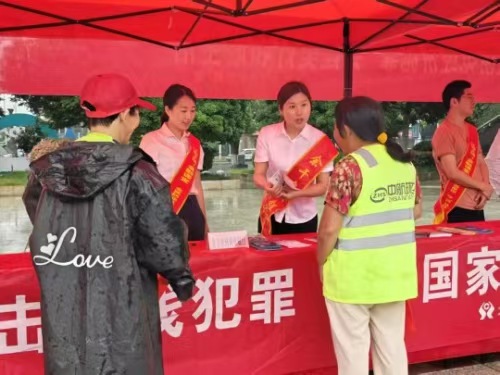 5月15日,在第十六個全國公安機關打擊和防范經濟犯罪宣傳日之際,江西省上饒市余干縣公安局經偵大隊、余干縣金融監管支局在世紀廣場開展了“與民同心,為您守護”為主題的集中宣傳活動。余干農商銀行積極配合參與,通過警銀攜手打造的"藍白防線",為百姓送上干貨滿滿的金融安全課。
