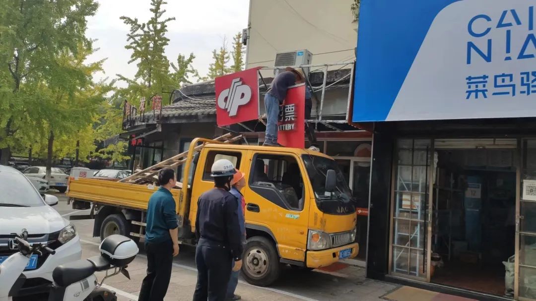 “三清”行動之清違規店招。店招長期破損、橫幅亂拉亂掛、鋼管架不穩固和廣告鋼管裸露銹蝕等問題,極易成為安全隱患。為確保穩妥有序整改,朝陽執法中隊全面排摸沿街路段、住宅小區周邊和學校周邊等重點區域。針對前期發現的隱患點位,執法隊員與商家充分交流,將周圍的私家車和物品暫時挪移,引導疏散行人注意避讓后,安排專業人員作業,有序、穩妥拆除高危隱患店招廣告,拆除完成后及時清理現場雜物。