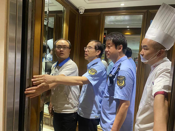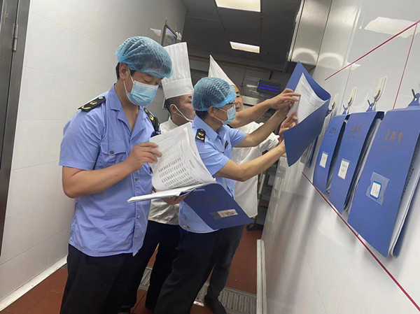 在承擔接待任務的餐飲單位——文淵閣美麗豪酒店,監管所安排執法人員每天入駐會場駐點監督,預審每日每餐菜單,對食品原料采購、進貨查驗、索證索票、食品制作加工流程、從業人員健康狀況、“三防”設施使用、食品留樣、餐飲具清洗消毒等各個環節進行全面監督檢查,排除安全隱患,一旦發現不規范問題,及時指出,督促立即整改。