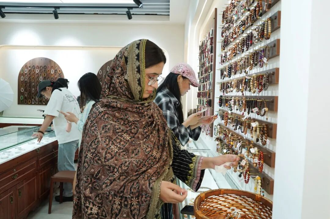 賽爾公司董事長張筠表示,“開業第一天就收獲了幾十個訂單,店里不少采購商在體驗AI眼鏡,而現在來店里都是新客戶。”義烏糖唐堂文化傳播有限公司CEO黃子軒表示,“珠寶銷售量達到幾萬,潮玩手辦也獲得用戶好評。一名印尼MCN機構的選品合伙人對店里的手鏈和包包愛不釋手,狂拍視頻。”
