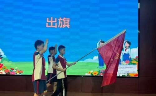 儀式在莊嚴的《出旗曲》中啟幕。三名旗手步履鏗鏘,護衛隊旗緩緩入場,全體師生肅立凝視。老隊員們敬起標準隊禮,新同學們亦以挺拔站姿,傳遞著對少先隊組織的崇敬。“我們是共產主義接班人,繼承革命先輩的光榮傳統……”激昂的隊歌響徹校園,香樟掩映的校園里,歌聲裹挾著少年們的自豪與向往,為秋日增添了滾燙朝氣,更讓“敦本”向學、向上的精神在旋律中流淌。