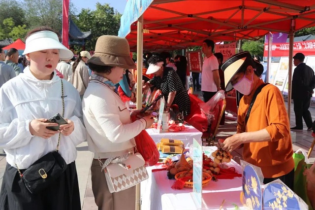 活動現場,人頭攢動。臺上,攻鼓子表演、情景詩樂舞《涼州詞》、舞蹈《天梯月影》《漢唐情韻》、戲曲表演《王寶釧·飄彩》等十余個文藝節目為現場營造歡快、熱鬧的氛圍。臺下,涼州剪紙、涼州堆繡、涼州編織等非遺產品琳瑯滿目,吸引游客駐足。天梯山石窟、西夏博物館、雷臺漢文化博物館和涼州會盟紀念館帶來自己的文創產品,并為游客介紹旅游優惠政策。各大企業帶著自己的文創、特色產品亮相,旅行社、酒店也推出精品線路和優惠措施,讓游客賓至如歸。