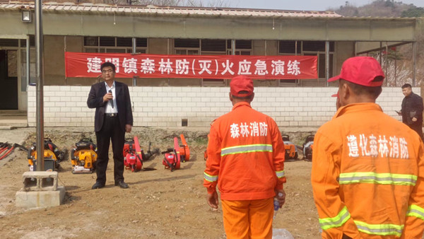 首先由建明鎮楊鎮長講述了防火意識,之后由建明鎮人大主席講述了如何防火和對常用撲火器具的使用和通訊工具的維修進行了現場演練。