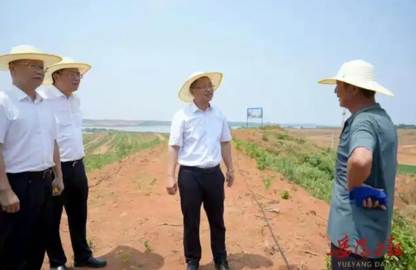 7月8日,謝衛江在岳陽縣筻口鎮省級糧食生產萬畝綜合示范片調研。