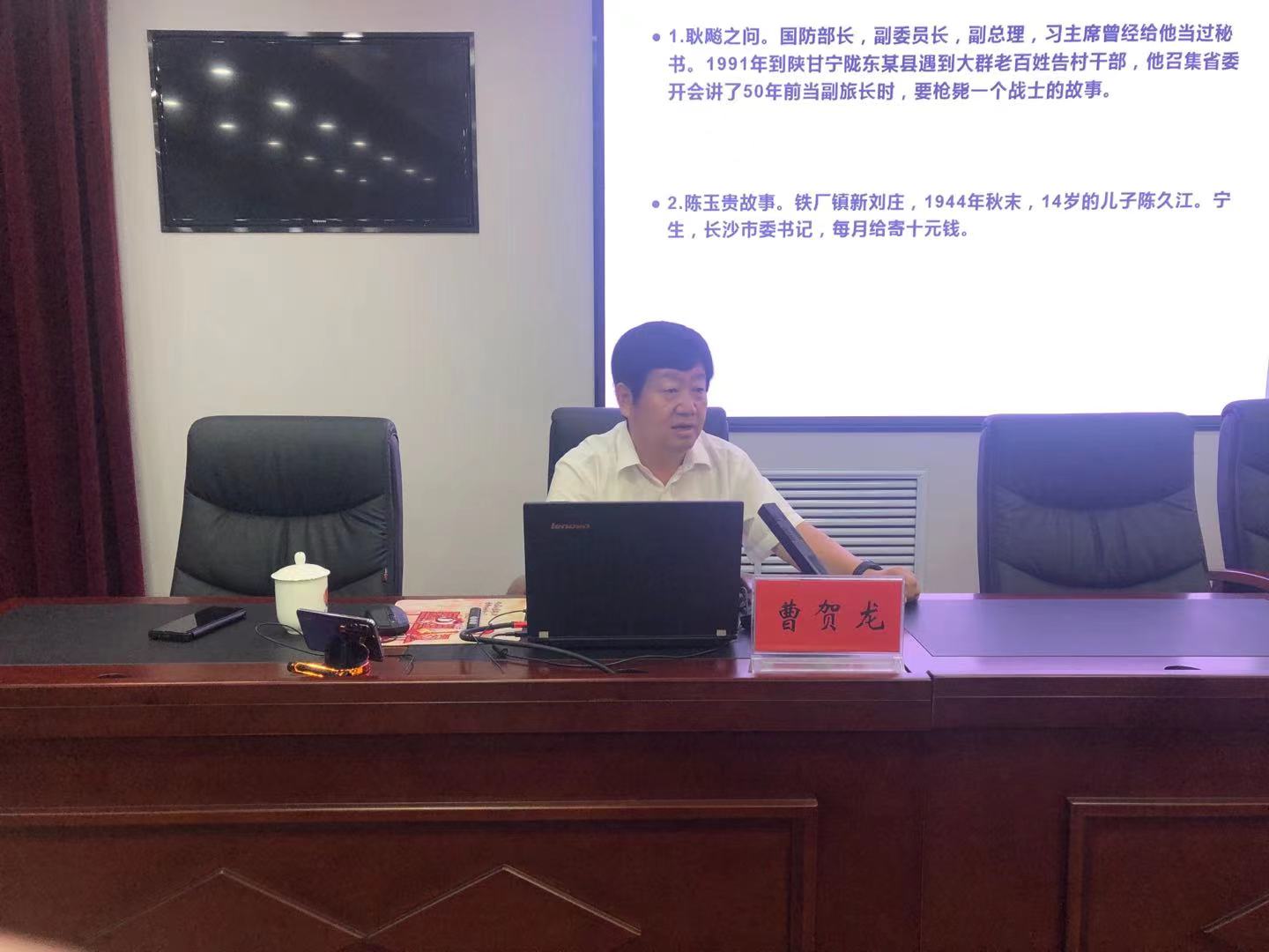 中國新媒體信息網河北訊(高洪義)6月22日上午,在建黨一百年周年前夕,市人大常委會副主任曹賀龍到市檢察院進行黨史知識宣講。曹主任作了題為:“致敬!英雄的冀東人民”的黨史知識講座。