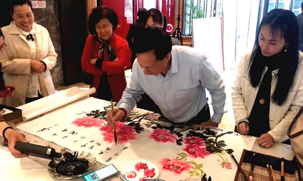 華夏夕陽紅藝術研究院院長崔殿甲;《書法報》北京站長、書法家趙傳華;青島家好紡織有限公司書記朱蘇華;青島妙斯啤酒有限公司董事長張維洲;九州楓林藝術研究院副院長、畫家魯艷珍、王京華;國家一級美術師,中國國際美術家協會會員、山東省美協會員辛 華;國家一級美術師、慧夢齋書畫院院長張 慧;青島翰墨書畫院院長劉金志;國家一級美術師、畫家高文清、安好、王菊濃、彭麗、張建忠、尹寶君、萬力;畫家張艷、張俊財、佟立生;書法家馮沛倫;烏蘭察布市美協會員尹寶君。