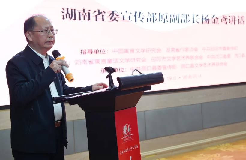 本次活動由中國寓言文學研究會、湖南省作家協會、邵陽市委宣傳部指導,湖南省寓言童話文學研究會、邵陽市文學藝術界聯合會、中共洞口縣委、洞口縣人民政府主辦,洞口縣委宣傳部、洞口縣文學藝術界聯合會承辦?;顒蝇F場名家云集,亮點紛呈。湖南省委宣傳部原副部長楊金鳶,一級巡視員、湖南省勞模協會常務副會長王邵剛,一級巡視員、湖南省鄉村振興局原黨組成員、副局長黎仁寅,中國寓言文學研究會會長、資深出版人孫建江,中國作家協會兒童文學創作委員會副主任、湖南省作家協會主席湯素蘭,洞口縣委副書記、代縣長許治國,洞口縣委副書記、統戰部部長郭向榮,洞口縣委常委、宣傳部部長唐煜,洞口縣人民政府黨組成員、副縣長毛超林等領導和中國寓言文學研究會副會長兼秘書長余途,一級作家、湖南省作家協會名譽主席姜貽斌,湖南教育報刊集團黨委書記、董事長王樹槐,中國寓言文學研究會副會長、湖南省寓言童話文學研究會會長謝樂軍,邵陽市文聯黨組成員、副主席申翊君,邵陽市作家協會主席周偉等近百人共赴這場文學盛會,共同為文學喝彩,向時代致敬。