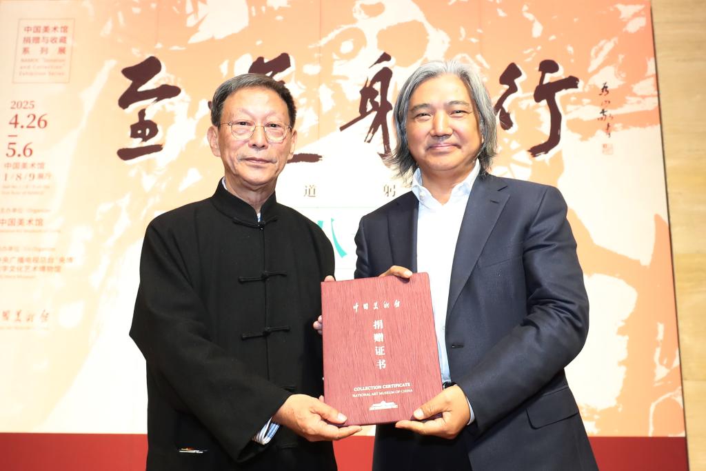 吳為山代表中國美術館向吳悅石頒發捐贈證書。中國美術館供圖