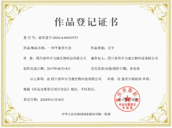 基于此,由陳遠寬帶領的四川省環宇力康生物科技有限公司(以下簡稱環宇力康生物)應運而生。自2010年成立以來,環宇力康生物致力于康養技術的創新與研發,秉承“科技與傳統智慧相結合”的發展理念,積極推動健康產業的前沿進步。將先進科技與深厚的養生文化融合,環宇力康生物在技術上取得了多項突破,為廣大消費者提供了多元化的健康管理解決方案。其憑借強大的技術積淀和對行業未來的深刻洞察,成功打造了多個核心技術,并在多個領域取得了顯著成績。作為行業的先行者,環宇力康生物通過持續創新,推動康養行業的標準化與普及化,將健康管理的理念與實際應用緊密結合,牢牢占據行業發展的制高點,為人類的健康事業作出了卓越貢獻。