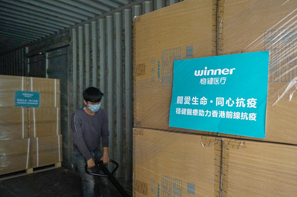 面對嚴峻的香港疫情,穩健醫療高度關注,接到香港方面的需求,第一時間響應,全力支援香港特區新冠疫情防控工作,目前已完成援港的300萬只口罩的調運,這些物資在穩健醫療深圳的倉庫裝車發貨,交由香港政府進行統一部署。